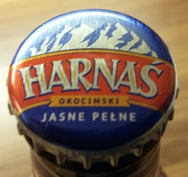 Harnaś okocimski jasne pełne - wzór podobny do 163, dap (V), napis okocimski na pomarańczowym tle.