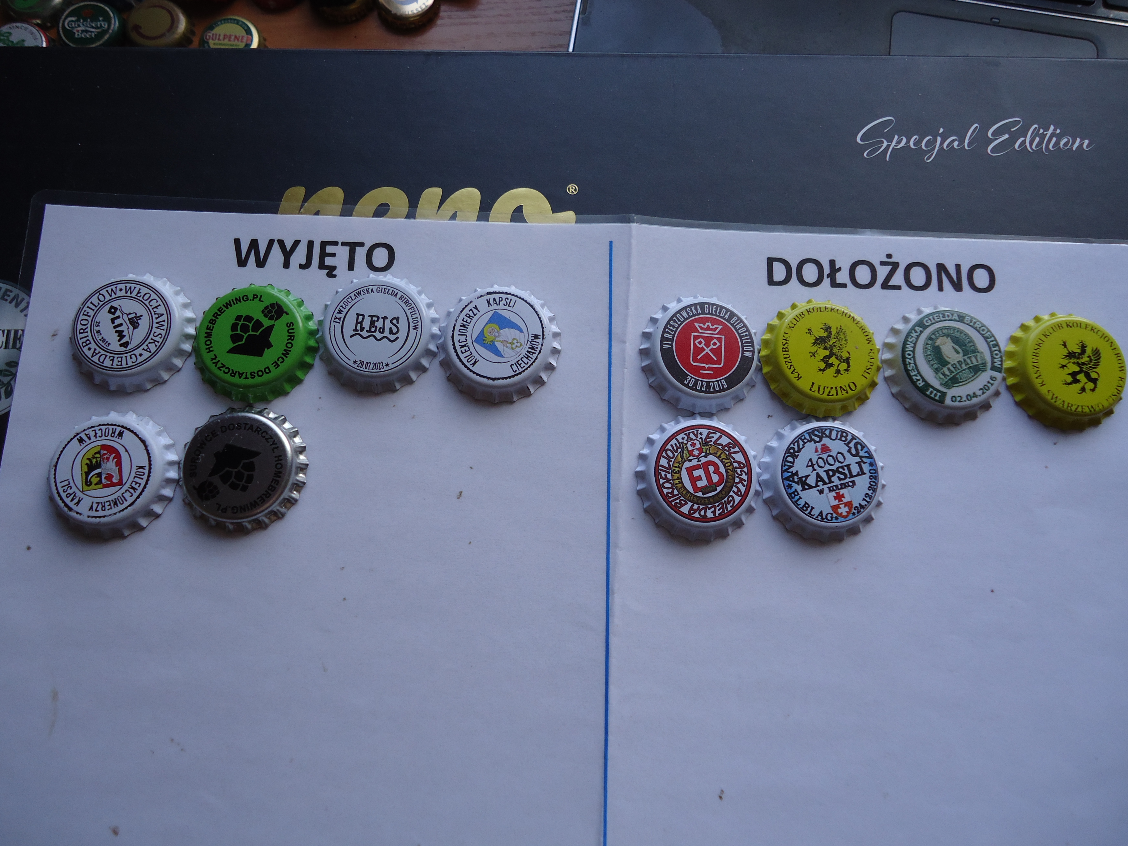 Te kapsle zbłąkały się na innych tackach i zostały dorzucone do tacki ze zdjęcia 1. Ale nie naniesiono poprawki tej liczby kapsli na kartce w kategoriach PL zwykła a PL starsza / serie.