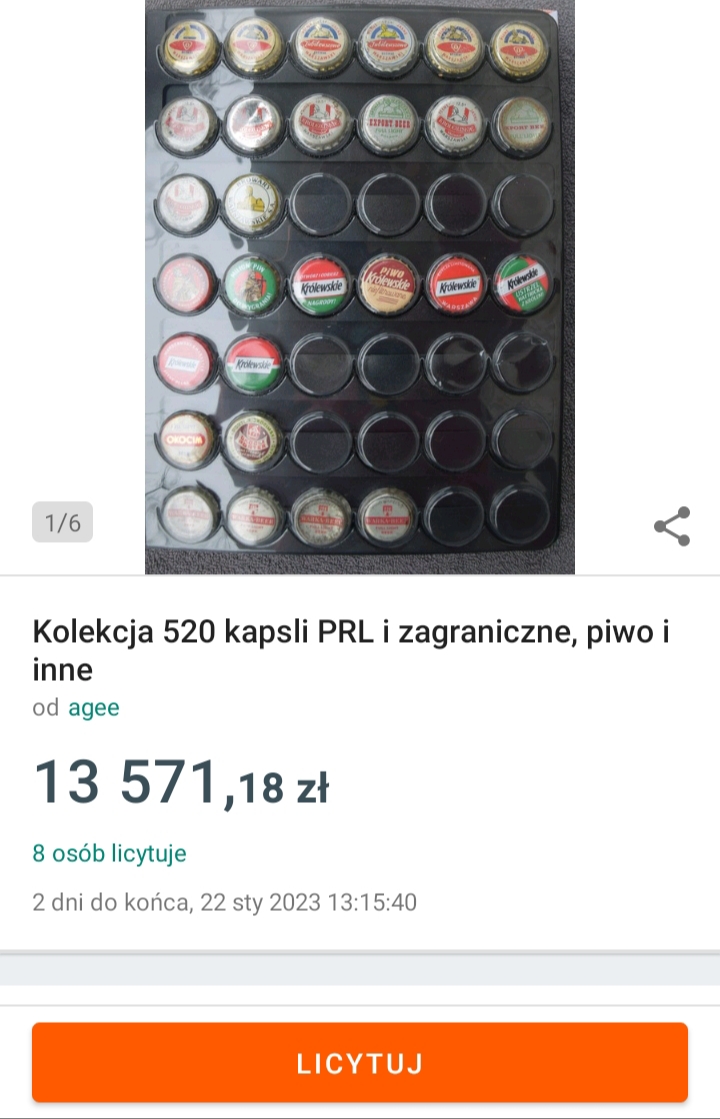 Jakieś dziwne te dywagacje ;), warte, nie warte. Urzędowego wykazu sztywnych cen nie ma, precedensów też nie bardzo. Trzech/troje licytujących, uznało że chcą za ten zestaw zapłacić powyżej 21 000 zł. To chyba jest odpowiedź. Zapewniam, że jest wiele osób, które uważają, że samo kolekcjonowanie kapsli jest czymś niedorzecznym