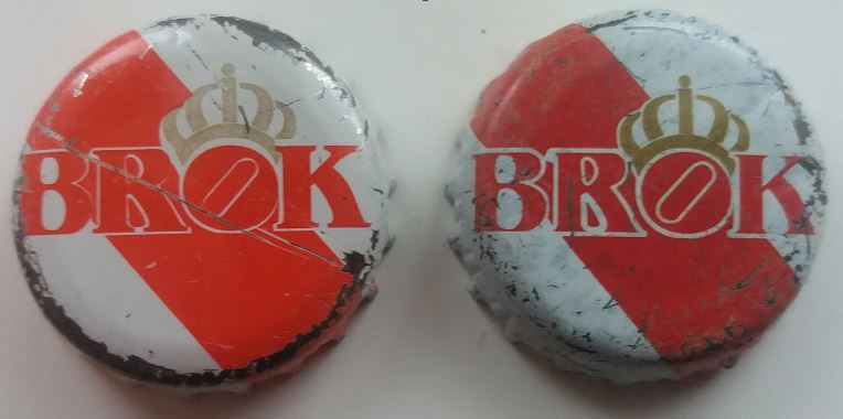 Odmiana Koszalina 18? Cienki obrys liter, kolorystyka jak nr 22 czy 26, pogrubiona czcionka (widać dobrze na literze 'K'), inne stopki liter 'R' i 'K', na ząbkach czerwone kawałki (zapewne sąsiedniego kapsla z arkusza zadrukowanej blachy). Uszczelka lana. Dla porównania z prawej strony umieściłem podglądowo moją katalogową 18tkę. Więcej lepszych fotek tutaj http://www.fotosik.pl/u/Mike007/album/2407302