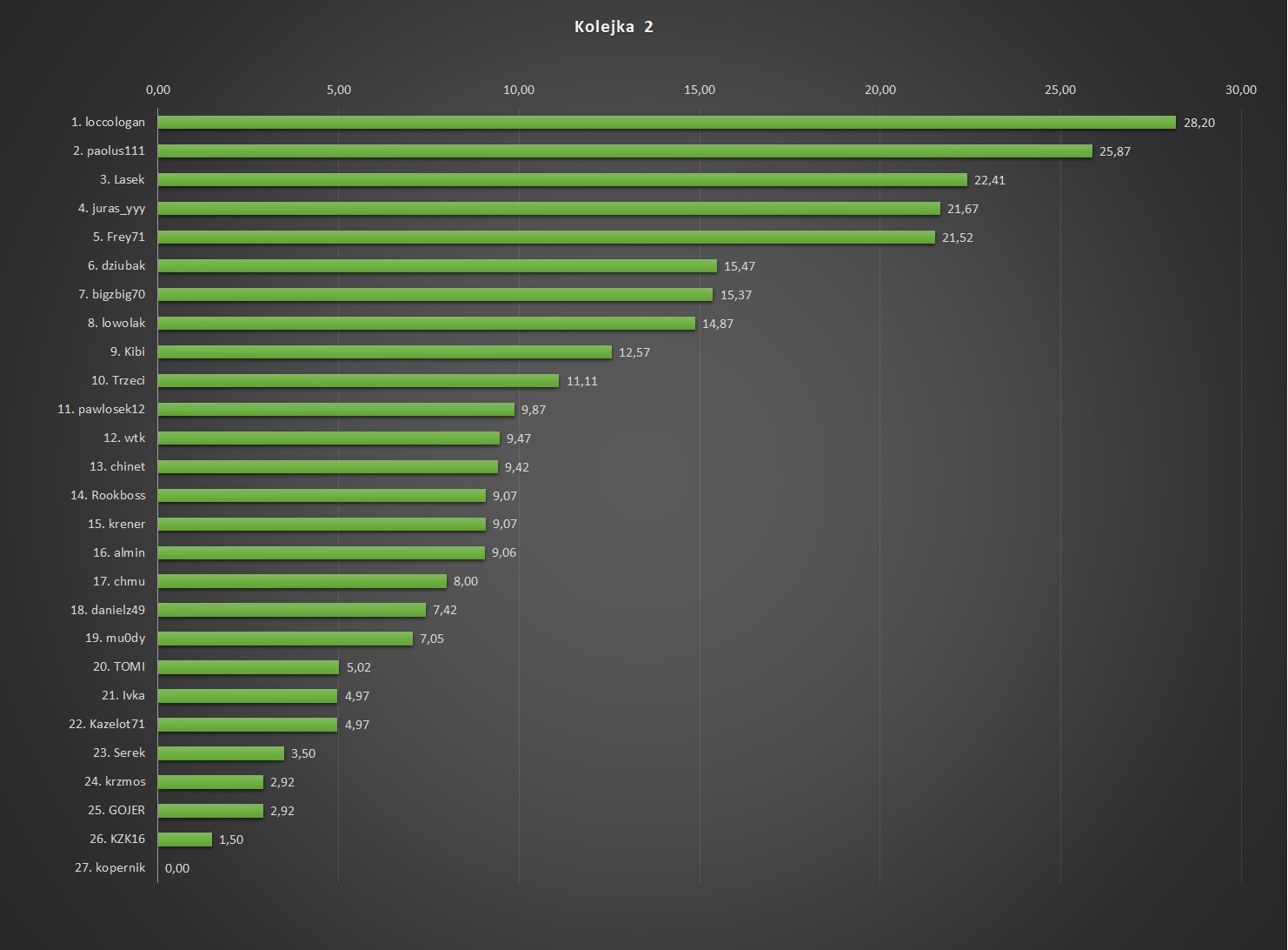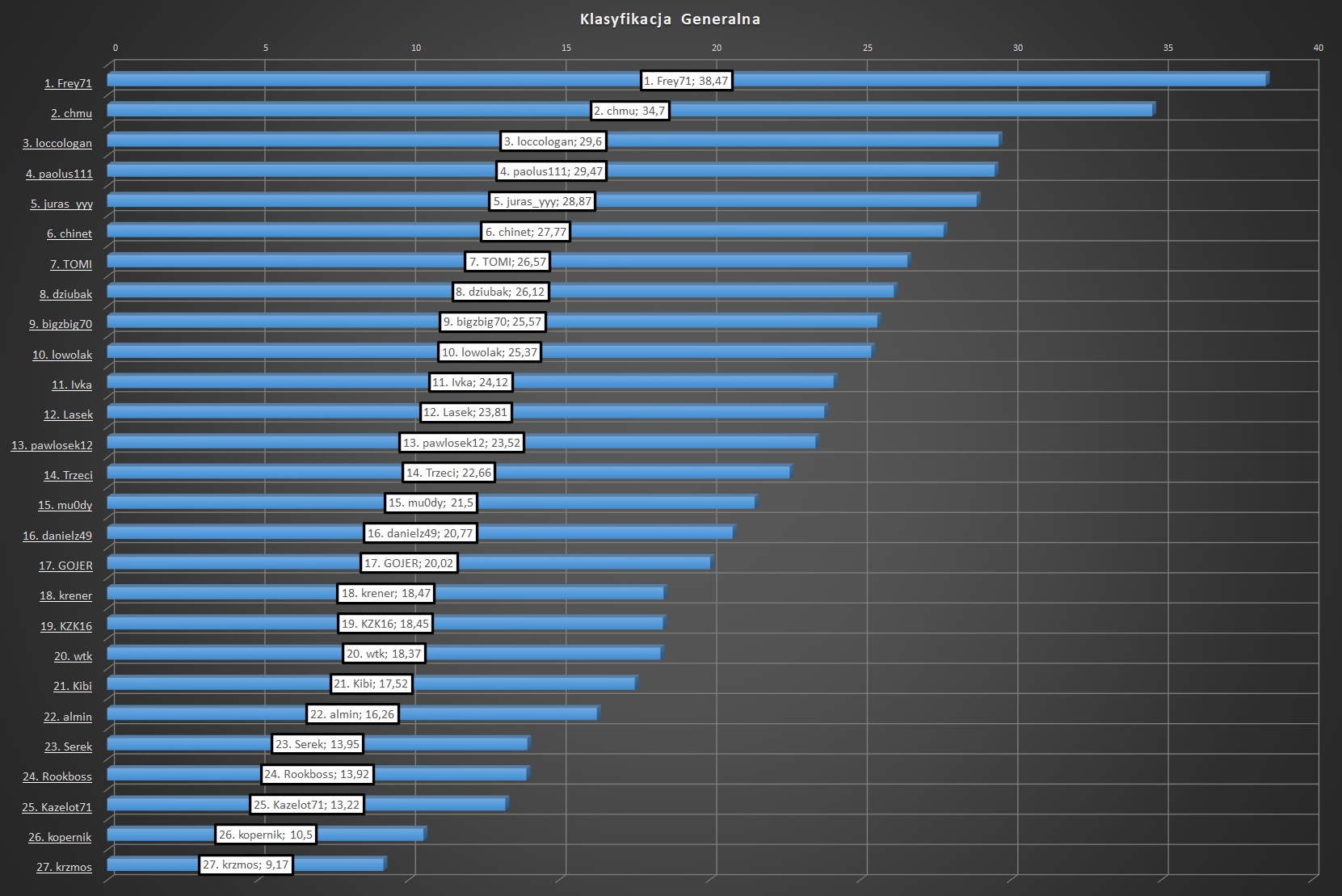 chmu, którzy jako jedynie przekroczyli barierę 30 punktów.