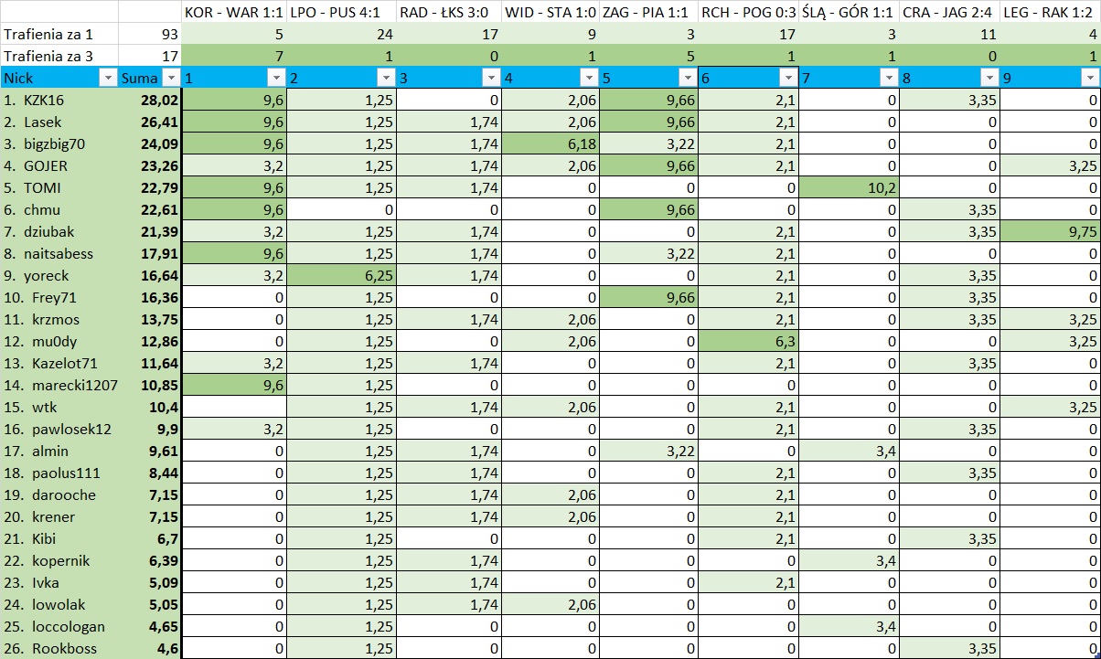 W przypadku spóźnionego typowania proszę o skopiowanie całego gotowca i pozostawienie bez wyniku spotkań które już trwają/zakończyły się.