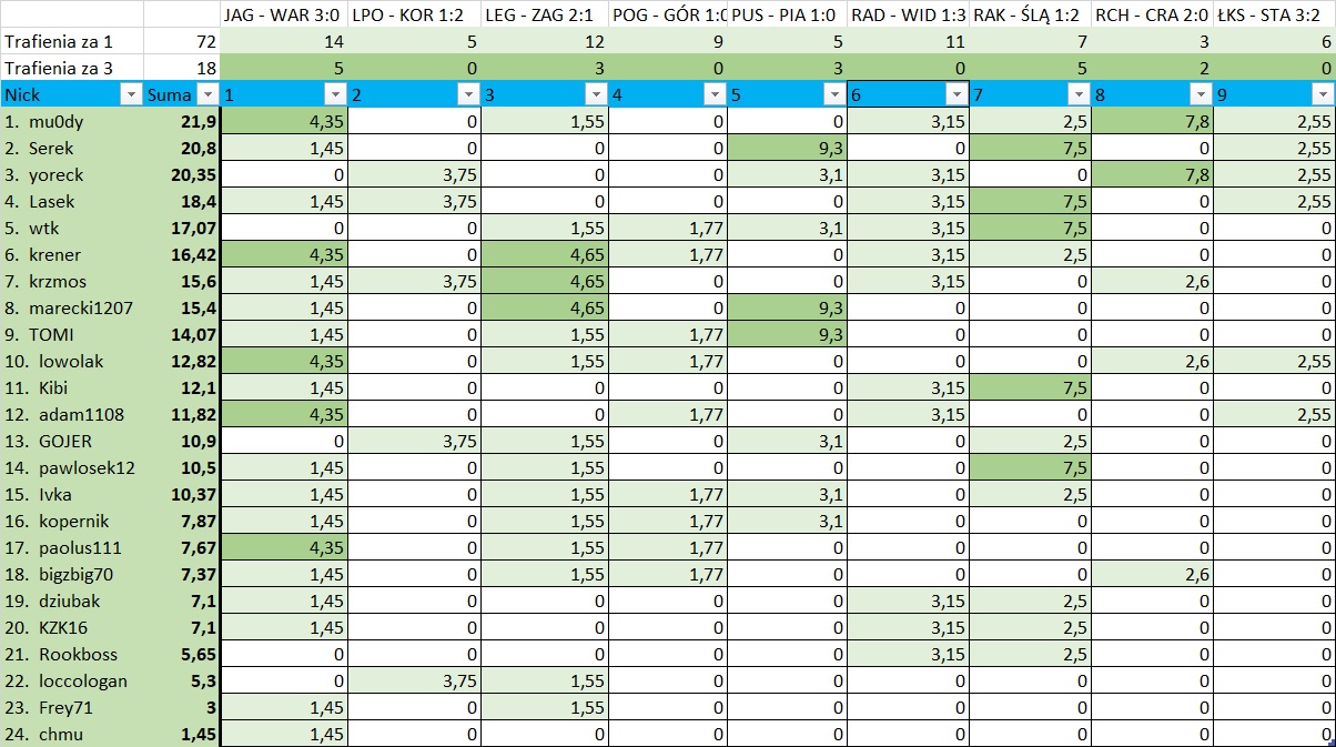W przypadku spóźnionego typowania proszę o skopiowanie całego gotowca i pozostawienie bez wyniku spotkań które już trwają/zakończyły się.