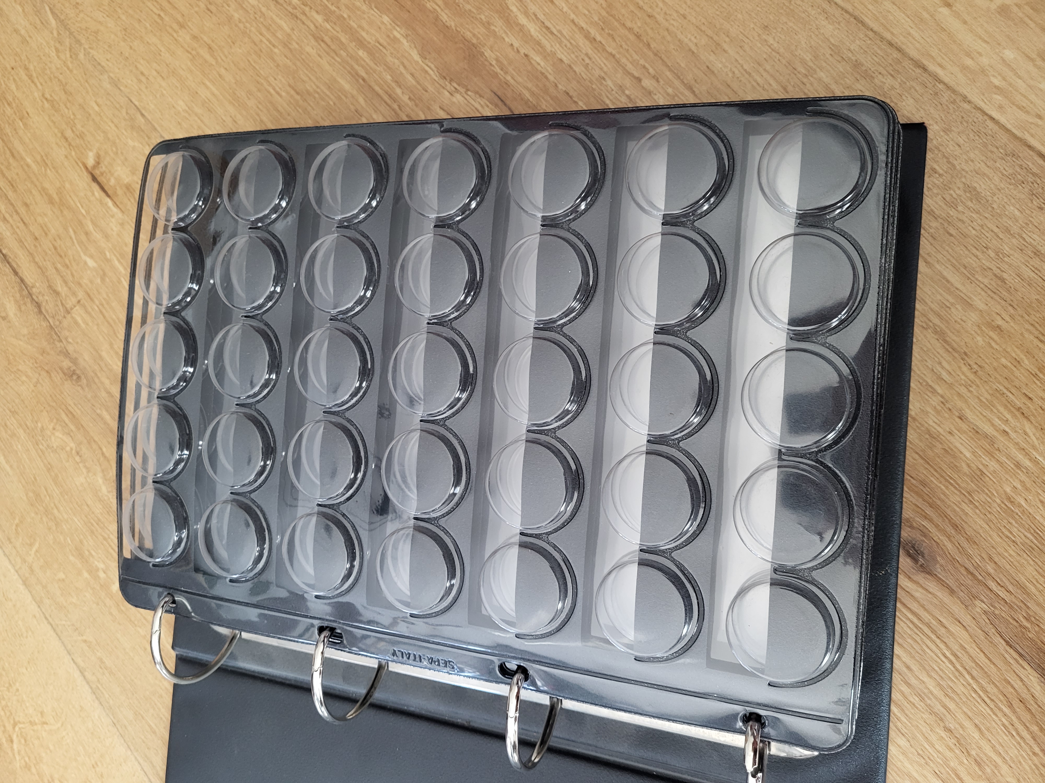 Przykładowa pusta i pełna tacka poniżej. Każda tacka mieści 140 kapsli.