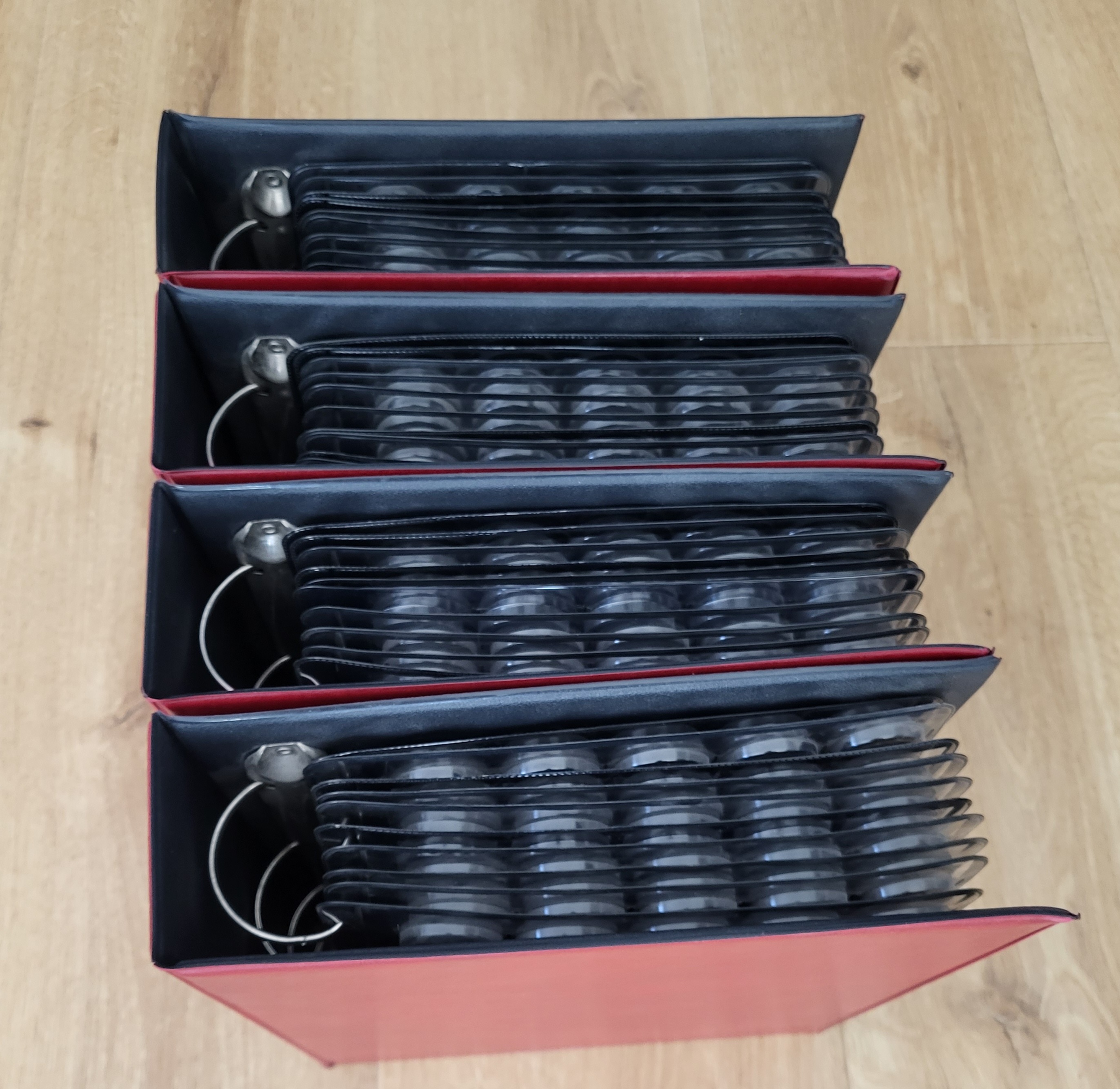 2) 4 segregatory włoskiej firmy Dikappa z 10 wkładkami każdy. Segregatory jak i wkładki noszą normalne ślady użytkowania. Możliwe pojedyncze pęknięcia wkładek itp. Ogółem stan db.