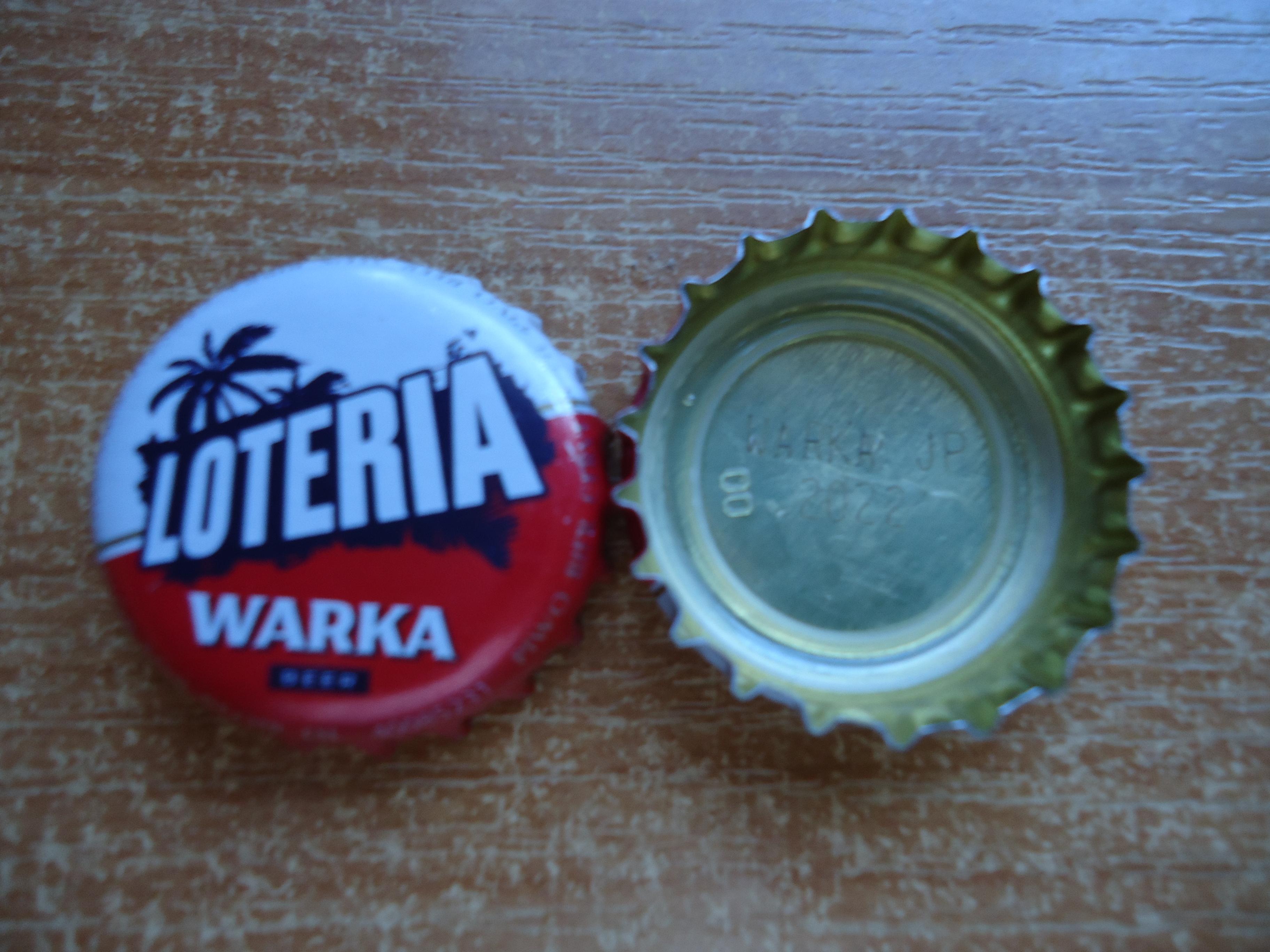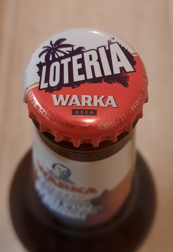 Warka z wygranym piwem.Wygląda na nadruk igłowy, więc można się spodziewać takich błędów jak np. w Elblągu parę lat temu.
