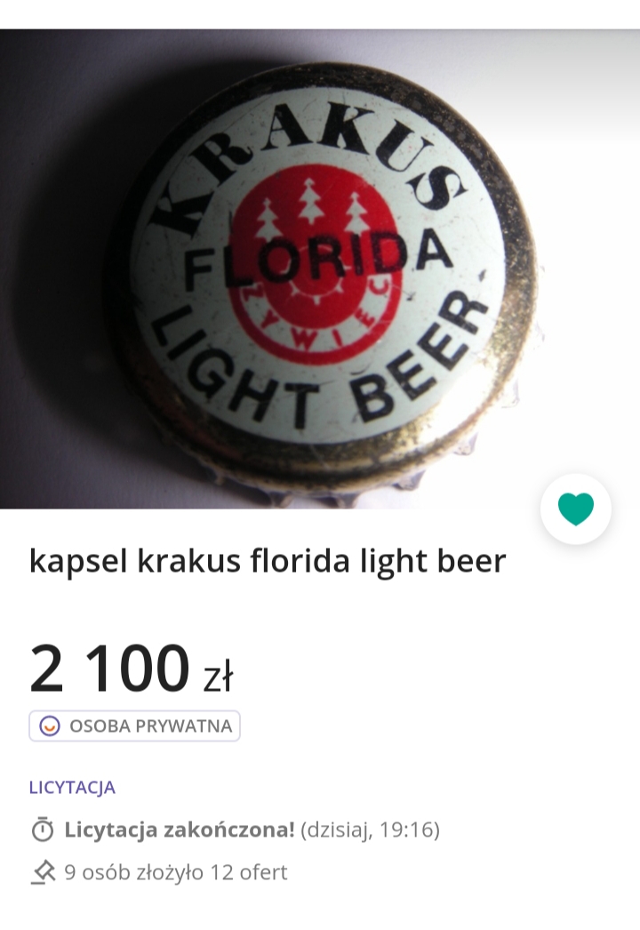 Warta odnotowania cena za kapsel. 29.05.2022 Zabrze nr 7 butelkowany 1980.55 zł . 10 osób licytowało