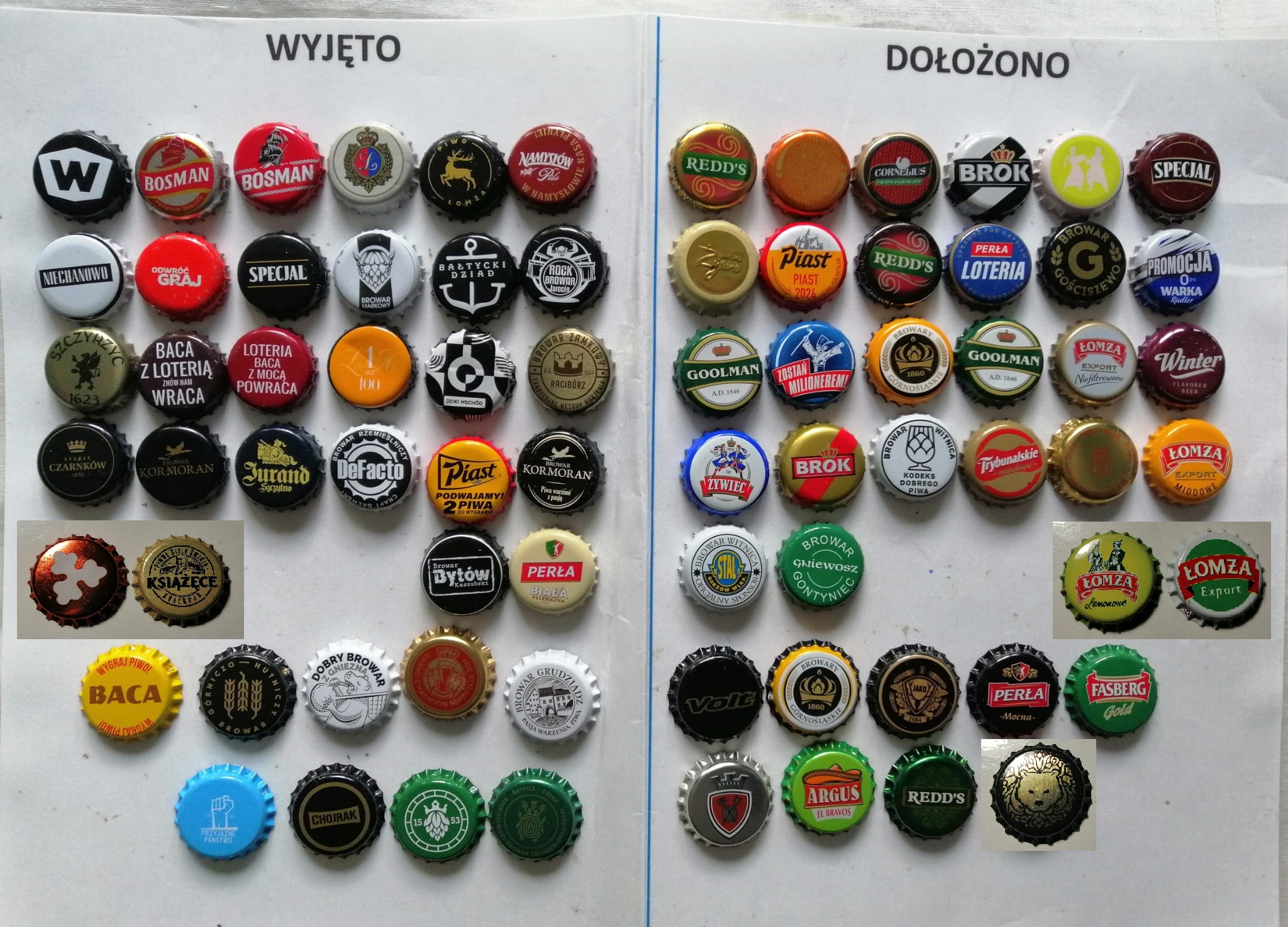 Polska Plus - kapsle piwne o wartości poniżej 50% oraz niepiwne o wartości poniżej XXX. W obrębie tej kategorii kapsle wymieniamy w ten sposób, żeby każdy wyjęty z paczki kapsel miał odpowiadający sobie kapsel pośród dołożonych. Przykładowo: