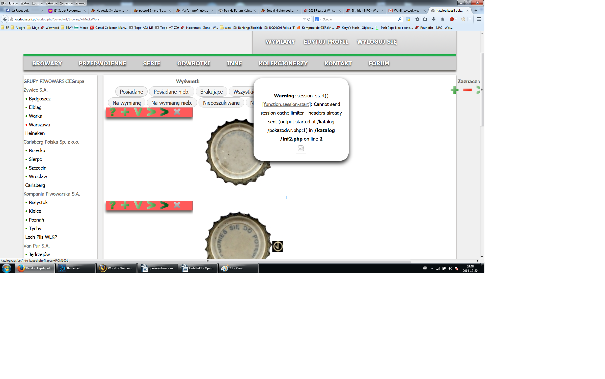 Znalazłem inny błąd. Wchodząc w kapsle giełdowe (Lublin) numeracja jest trochę dziwna, a mianowicie "2001,2002,2003". Złą numerację znalazłem jeszcze w Warszawie (giełdowe), kolekcjonerzy z Gdańska, yoreck, zkk, gkkk, gkkk repliki, letnie liczenie, lubrow, lublin browar lwów oraz zastępcze połczyn.