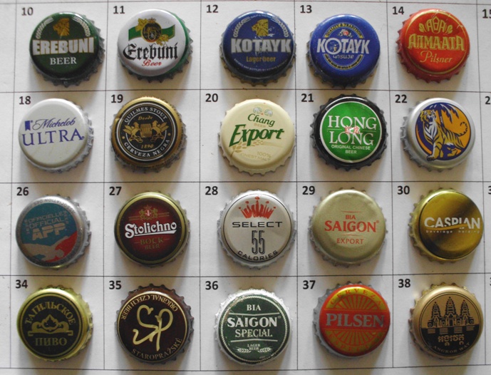 Jeśli chodzi Ci o ten czerwony w 6 kolumnie i 4 rzędzie to jest to Coca-Cola z Egiptu. Podobnie jak czerwono - biały kapsel Mirindy po prawej w dolnym rogu.