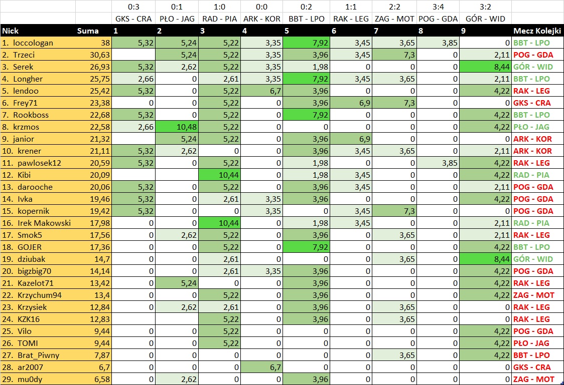 Re: [ZLT] Zielona Liga Typerów XXXII (Ekstraklasa - Jesień 2025) - Kolejka 9