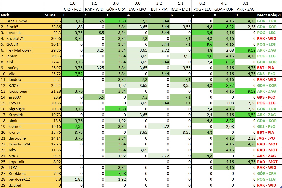 Wyniki Kolejki 9
