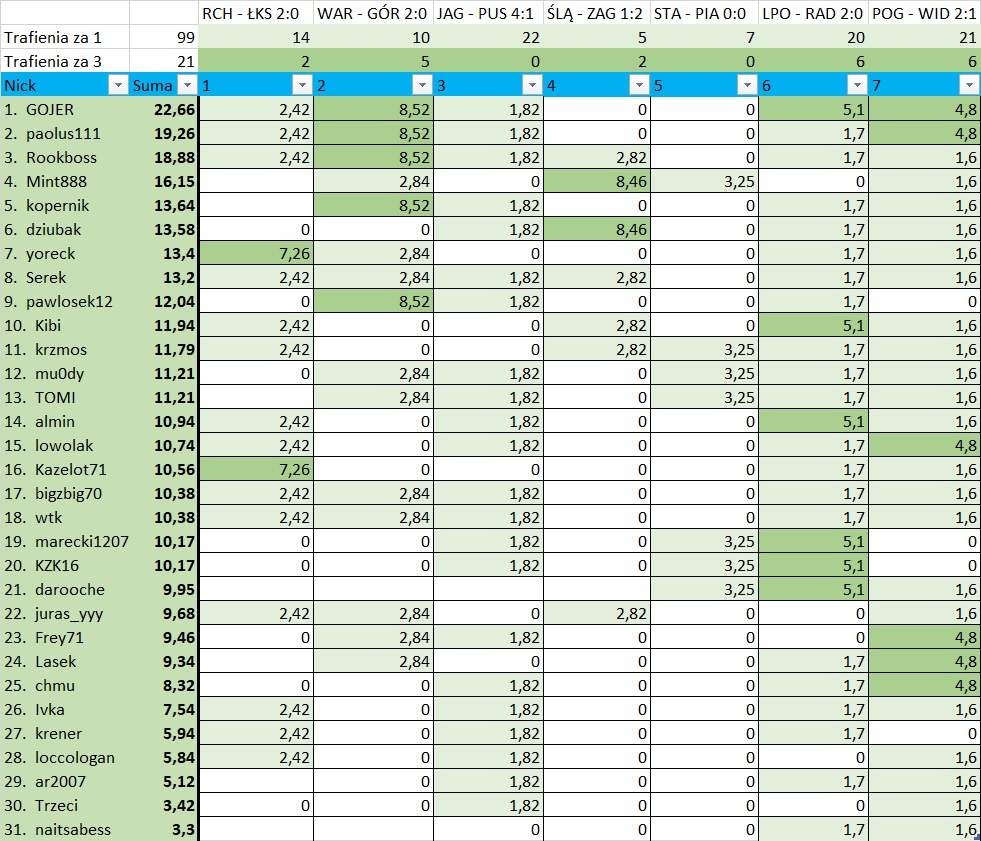 Re: [ZLT] Zielona Liga Typerów XXVIII (Ekstraklasa - Jesień 2023) - Kolejka 2