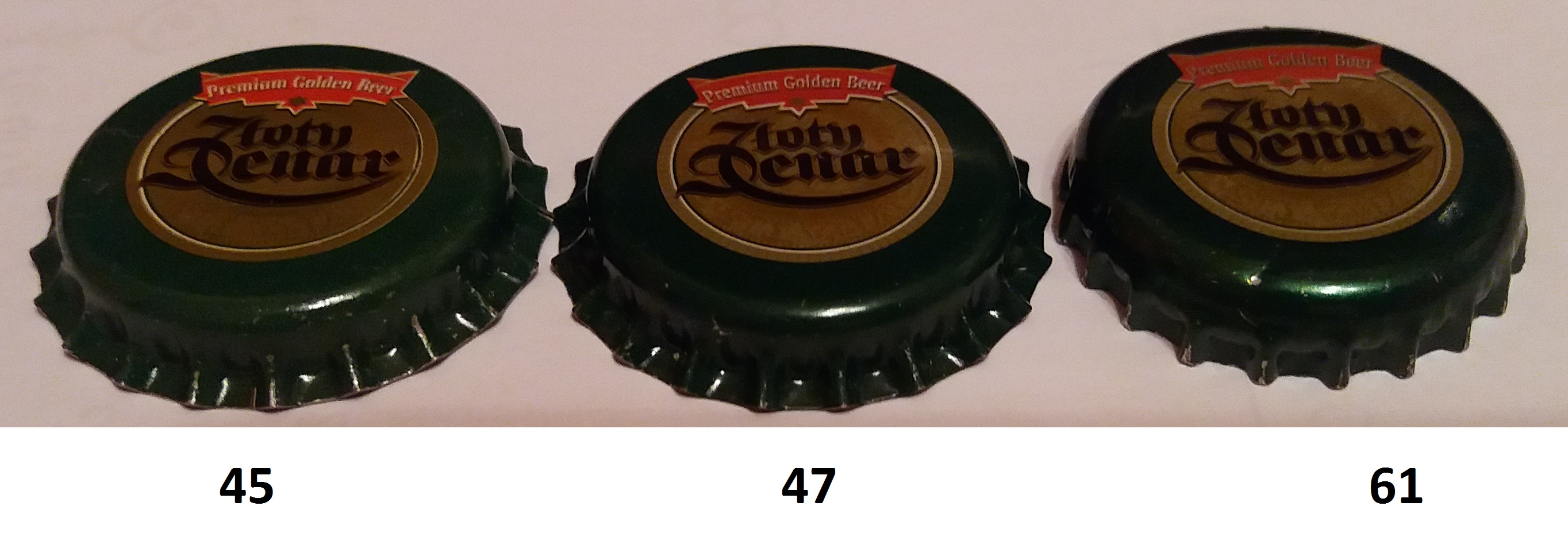 Numeracja wg katalogu z sygnaturami, trochę słabe światło (sztuczne) dlatego różnice mogą być słabo widoczne, ale numer 61 ma ewidentnie metaliczną farbę. Najlepiej widać to oczywiście gdy można porównać oba kapsle.