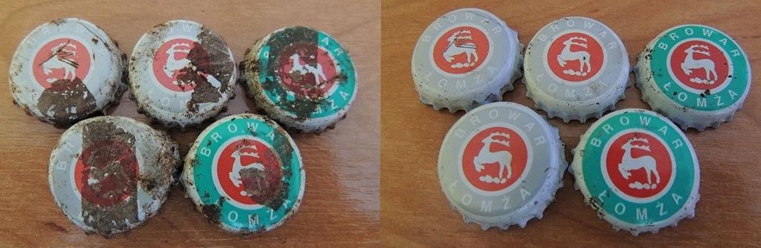 moje znalezione kapsle, przed czyszczeniem i po.