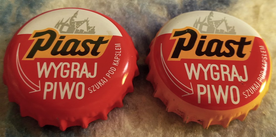 Nowy wzór/odmiana Siedlec. Nowy kapsel (ten z lewej) jest błyszczacy i ciemniejszy w porównaniu do nr 1, który jest matowy i jaśniejszy. Zdjęcie nie oddaje realistycznej różnicy.