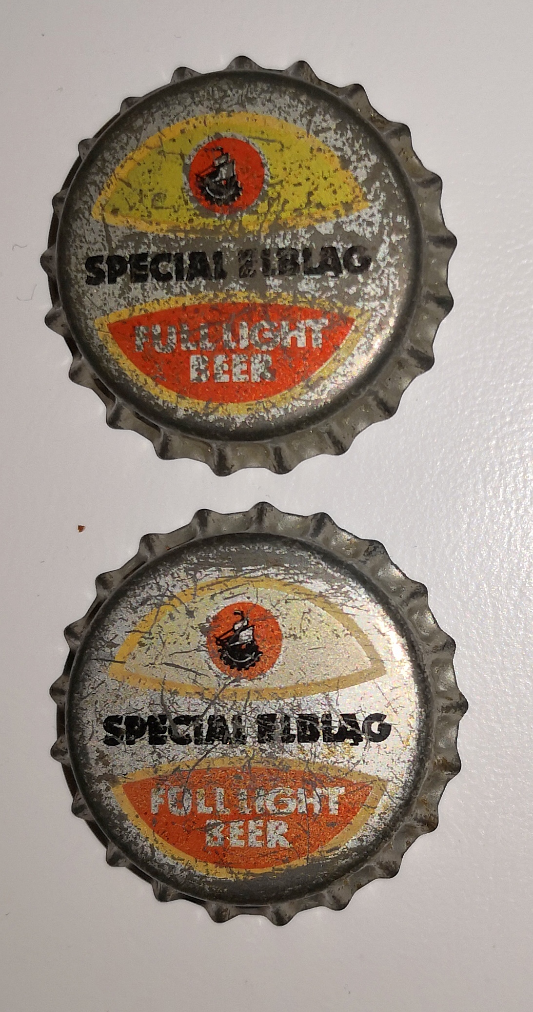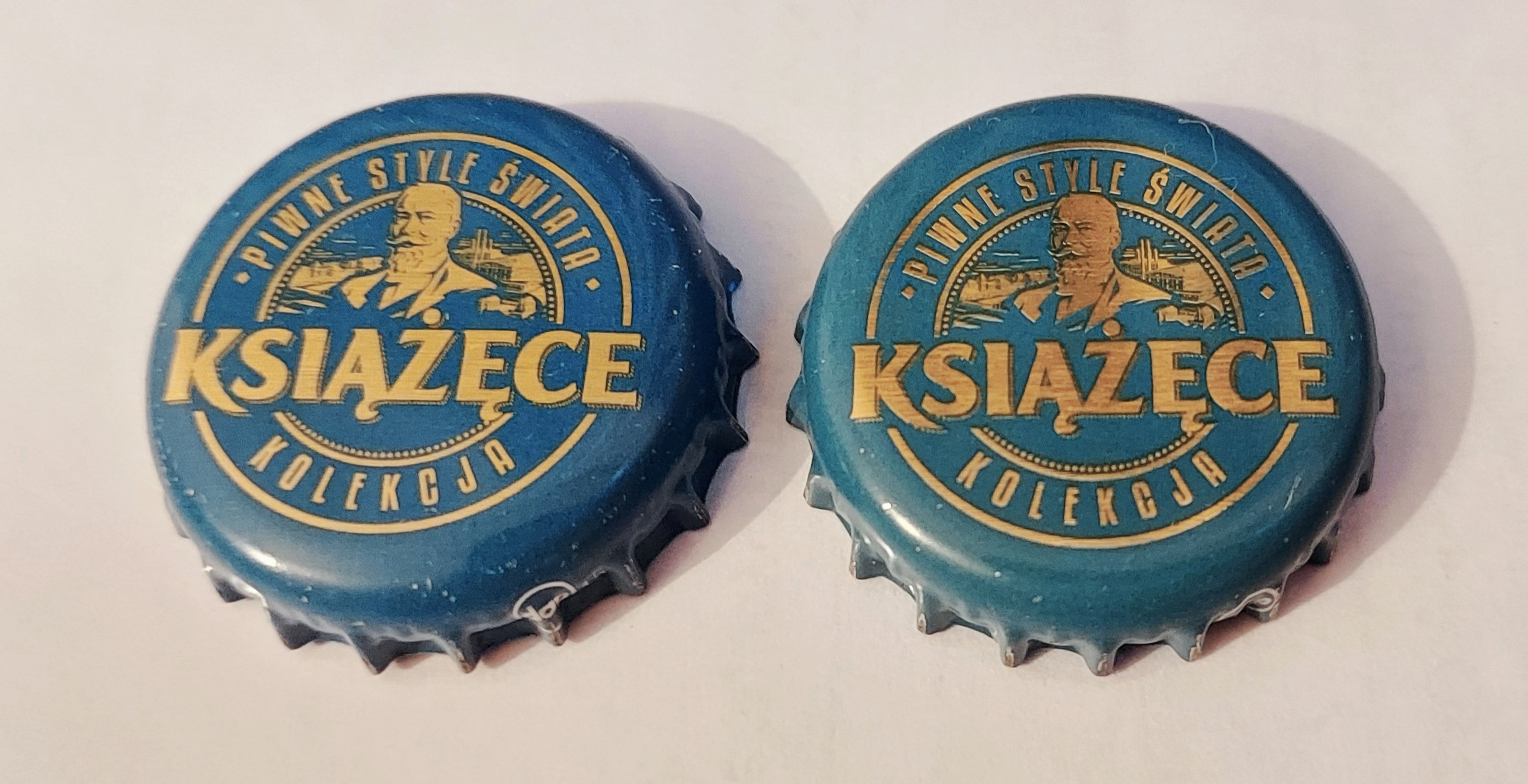 Wrocław Piast nr 64 różne odcienie (na żywo jest większa różnica w odcieniu). Z lewej jest bardziej żółty, prawy wpada w złoty odcień. Ten kapsel z prawej ma na odwrocie kod.