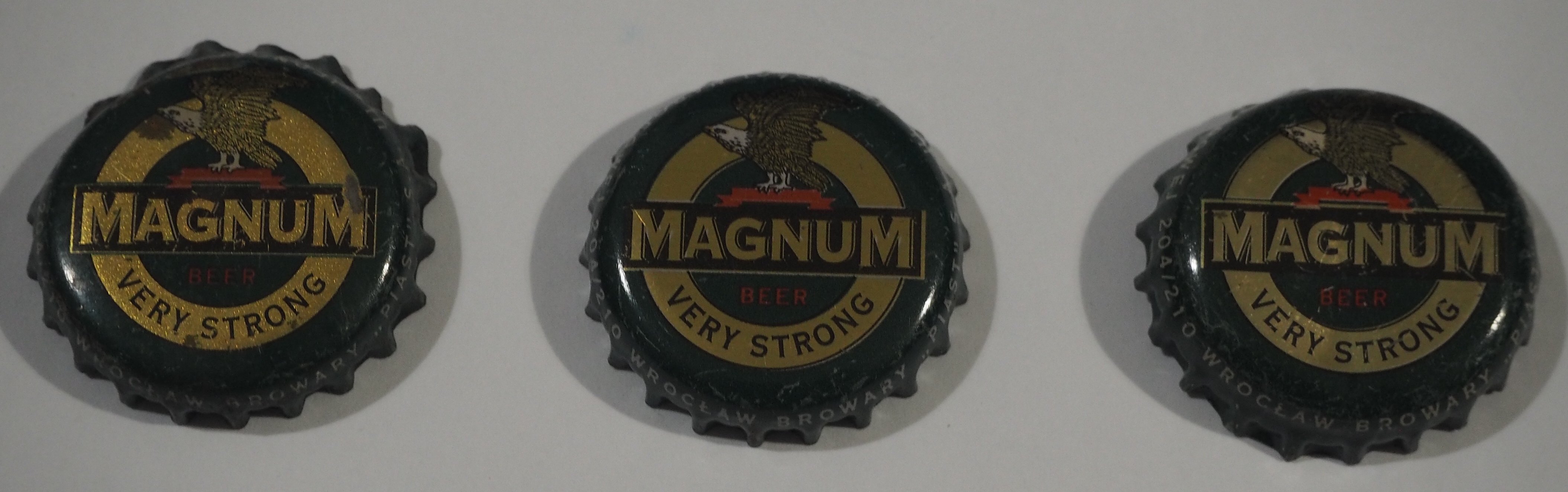 Różne odcienie złotego tła. I ramka wokół napisu Magnum jest na każdym inna, ale to chyba tylko przesunięcie czarnego tła. Chciaż może i nie, bo wokół okręgu na 2 i 3 kapslu jest w jednym na górze a w drugim na dole okręgu dodatkowe złoty pasek (efekt 3D). Ten prawy kapsel w rzeczywistości ma odcień wpadajacy w srebrny kolor, ciężko to uchwycić na zdjęciu.