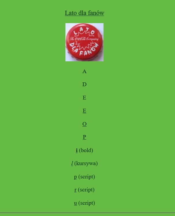 Ulozenie wyrazu powodowalo wygranie biletow na dana impreze. Problem polegal na tym, ze kapsli "m" oraz "96" nie bylo. Tzn. moze byly, ale kilka na caly kraj :D wiec de facto nie wiem czy mozna nawet teoretycznie umiescic ke w katalogu. Taka informacja byla w kazdym razie na etykietach.
