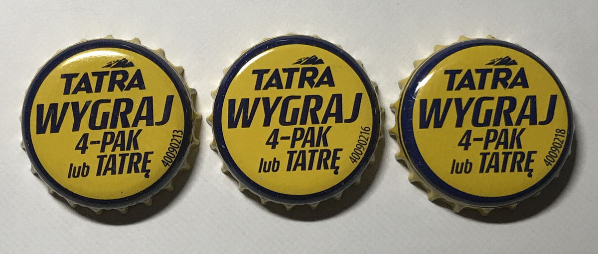 Wczoraj w sklepie trafiłem trzeci, ciekawy wariant Tatry z DAP - wersja z białym rastrem na większą część napisu Tatra. Nie jest to odosobniony przypadek, bo były tego całe skrzynki. Dodatkowo nr na boku kapsla jest w kolorze białym - w nr 89 jest żółty.