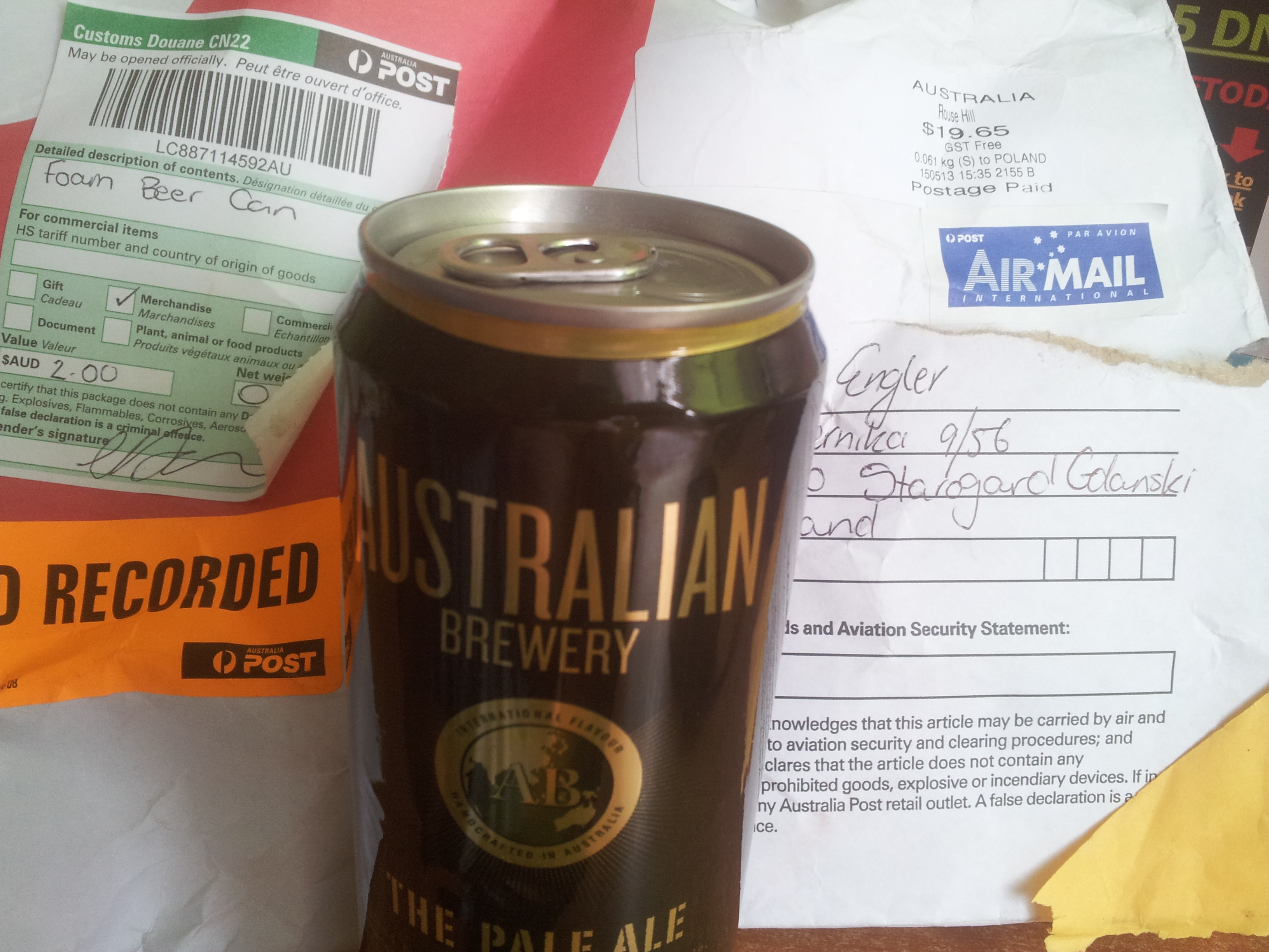 Dziś może nie kapsle, ale to najdziwniejsza przesyłka jaką kiedykolwiek dostałem. W środku była puszka. Niby nic w tym dziwnego, ale doczytałem, że nie jest pusta. Według listu znajduje się tam piana (foam) :D. Byłby ktoś zainteresowany czymś takim? :P