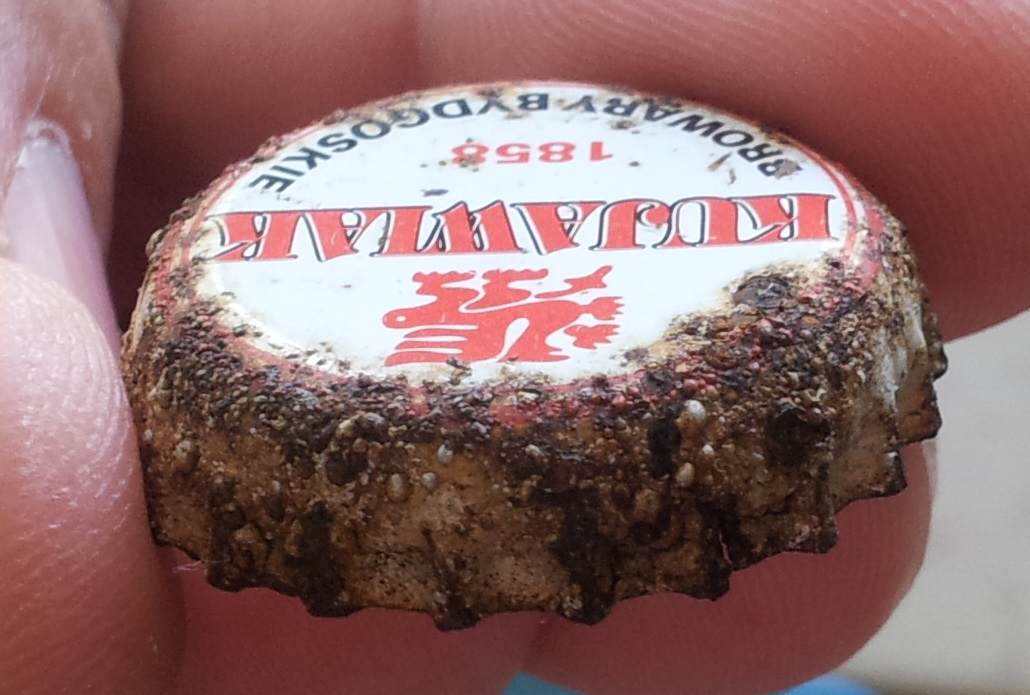 Pisząc jeziorne znalezisko miałem na myśli, że kapsle zostały znalezione koło jeziora, a dokładnie Jeziora Czarnego przy ul. Bałtyckiej (goblin powinien wiedzieć) :) 2 kapsle Olsztyn 3 leżały koło siebie wbite w ziemię ze 5 m od jeziorka ;) Ten lepiej zachowany był ząbkami do dołu, drugi odwrotnie :)
