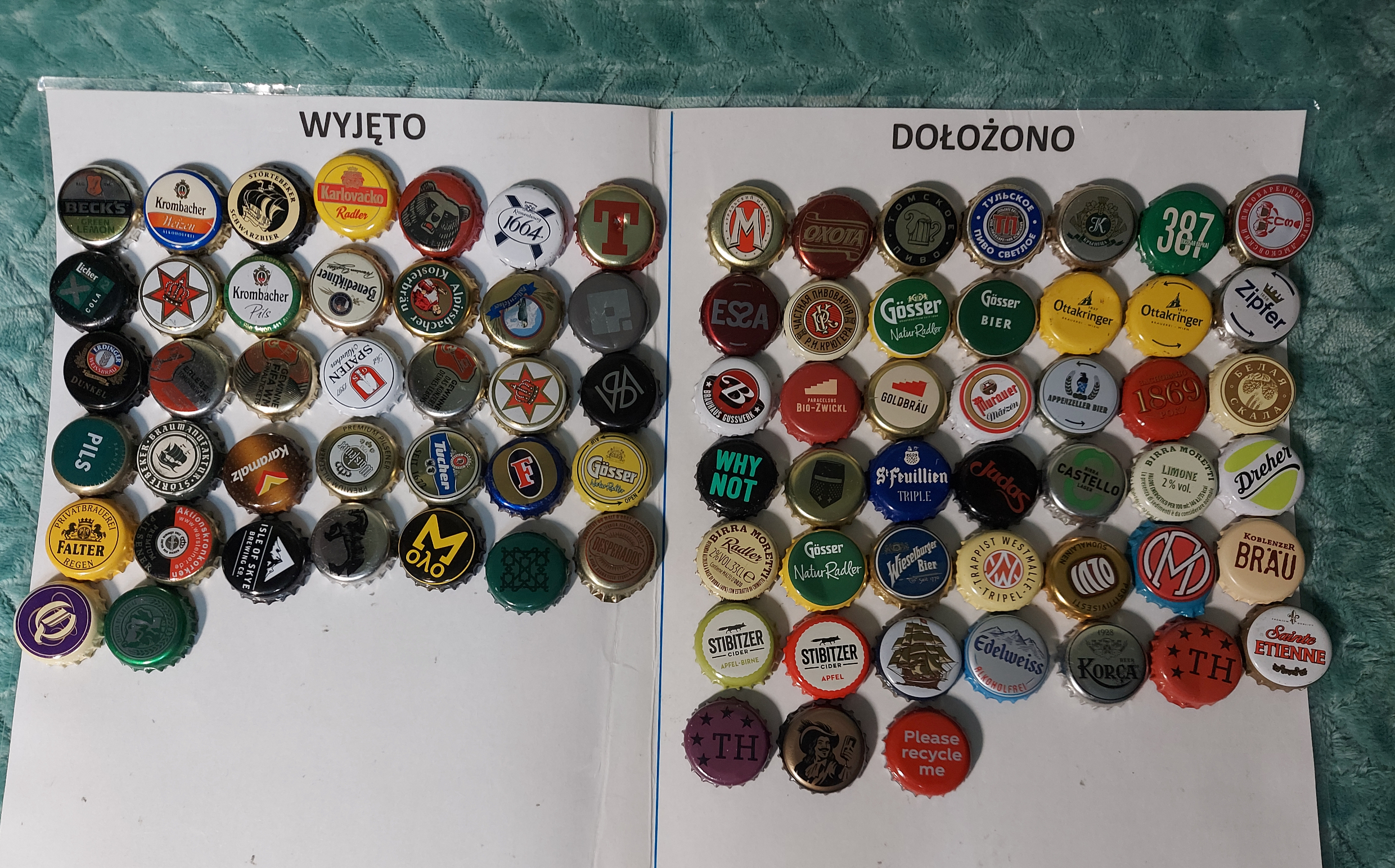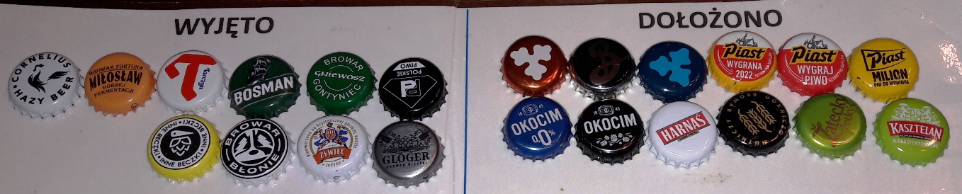 Ja w tej grupie wymieniałem jedynie 4 kapsle, stąd raczej się nie pomyliłem, więc założyłem, że pomyłka o tą jedną sztukę musiała pojawić się już wcześniej. W każdym razie - w tabeli pisakiem skorygowałem ilość kapsli na rzeczywistą. Nie jest też wykluczone, że w polskich butelkowanych któryś ze starszych kapsli się zapodział, bo część w nich jest odpowiednio "stara", by być w starszych (przykładowo - niektóre z browaru Tyskie'go).