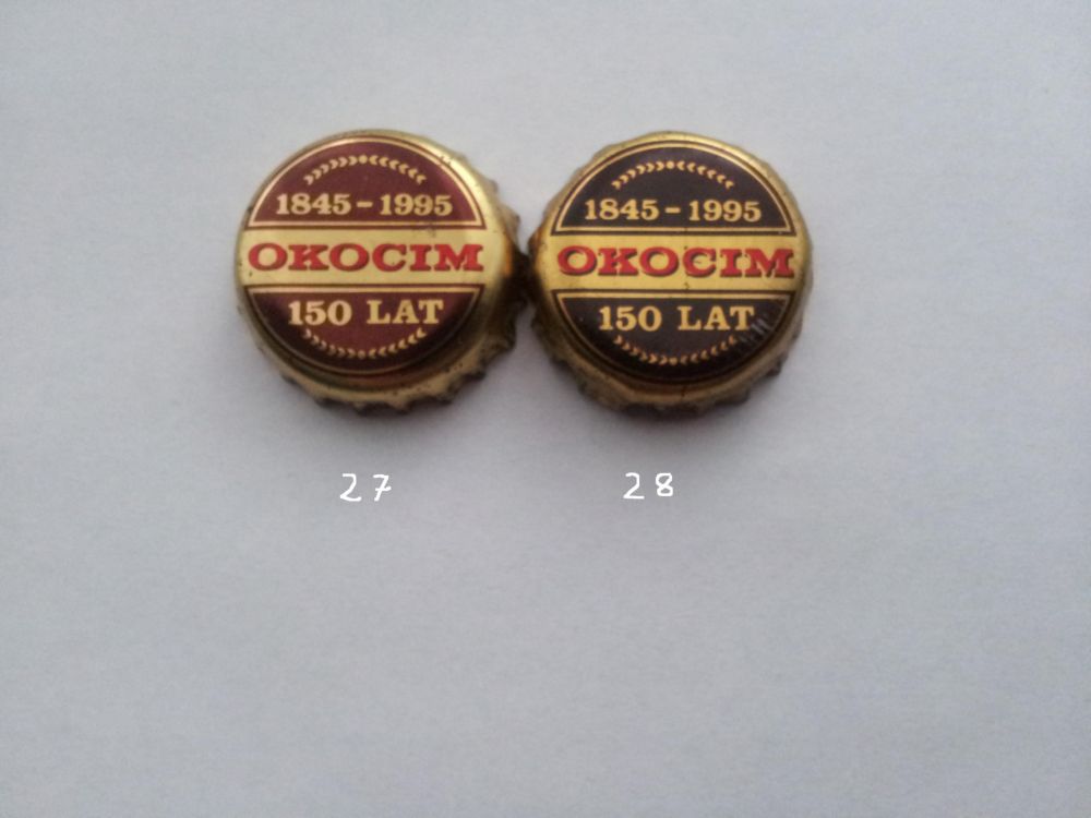 1. Okocim 28 ma bardzo wyraźnie CIENKIE litery napisów (nawet na słabym zdjęciu w katalogu Brokisa dodanym kilka postów wyżej przez MobyDicka), obydwa twoje kapsle jak i obydwa kapsle chineta mają GRUBE litery napisów. Wobec tego mam dla ciebie przykrą wiadomość: ŻADEN Z TWOICH KAPSLI NIE JEST OKOCIMEM 28.