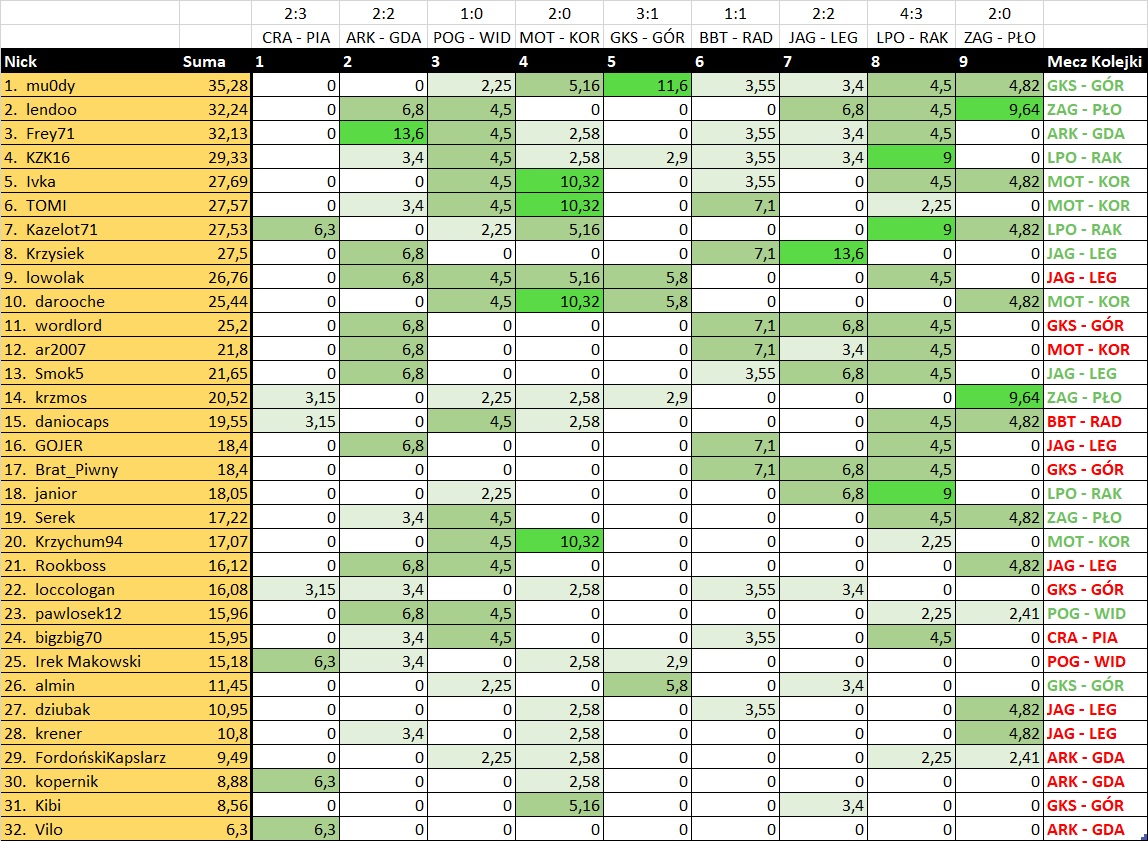 Ciekawa kolejka, pomimo słabego początku TOMI i mu0dy łapią formę...