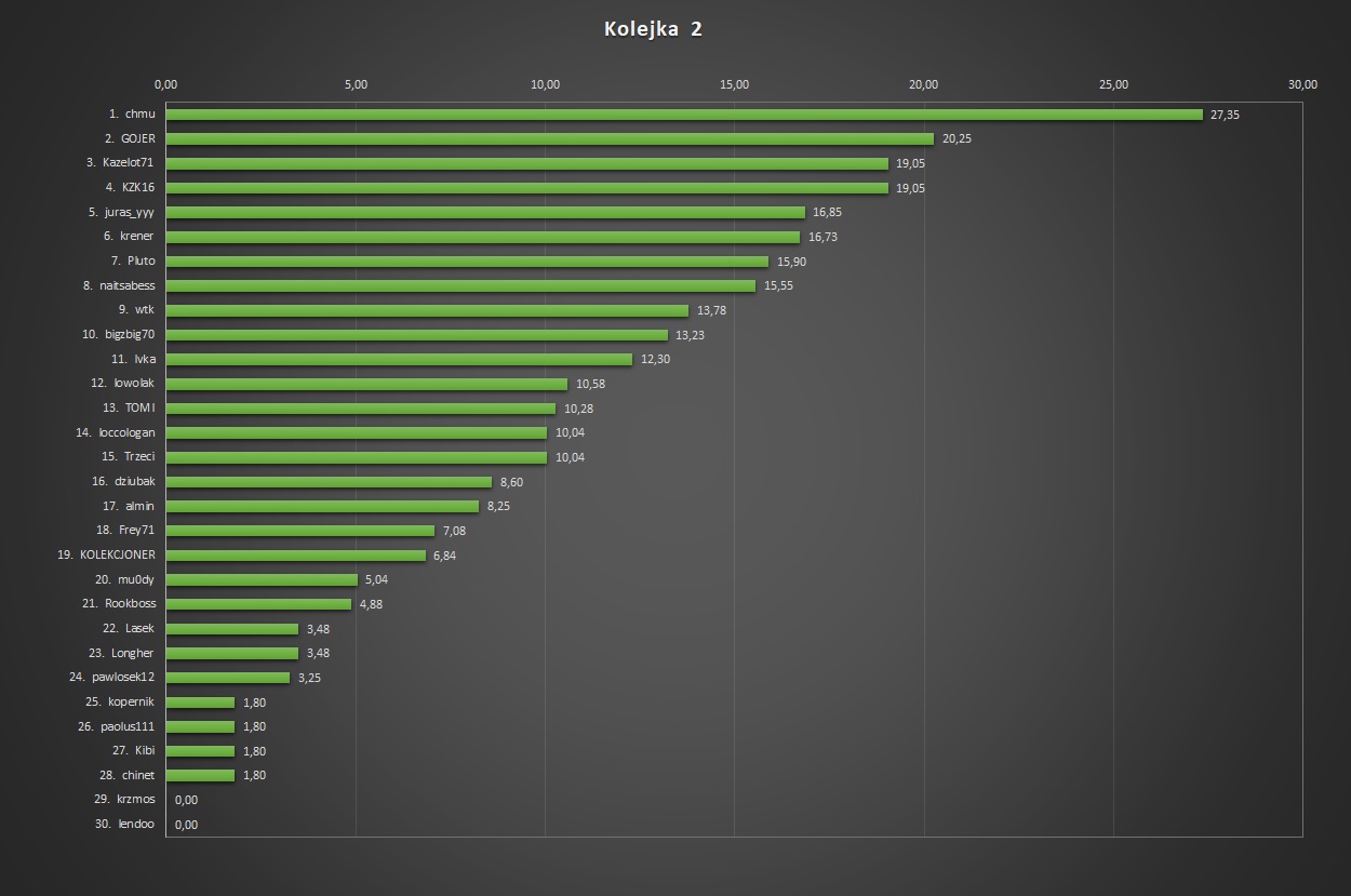 Klasyfikacja typera kolejki oraz dodatkowe statystyki pojawią się po rozliczeniu następnej kolejki.