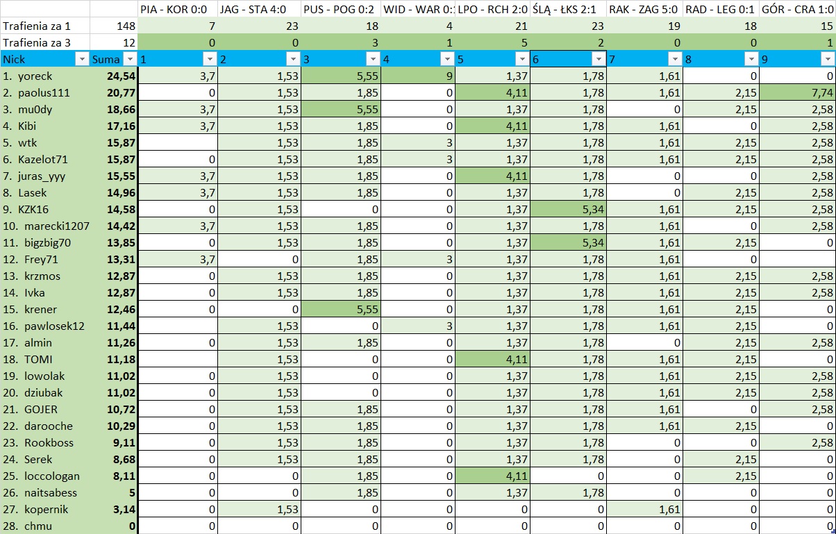Re: [ZLT] Zielona Liga Typerów XXVIII (Ekstraklasa - Jesień 2023) - Kolejka 14