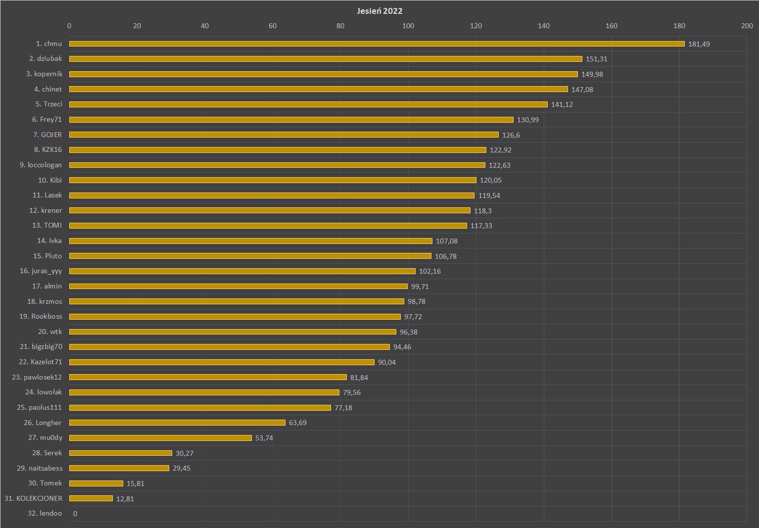 Tym razem nieokrzesanych i bijących się między sobą samców pogodziła Ivka, wedlug mojej wiedzy jedyna kobieta biorąca udział w naszej zabawie (czasy są bardzo dynamiczne i nie biorę odpowiedzialności za swoje słowa gdyby ktoś się poczuł urażony/urażona :czytaj: ). Co więcej, jej wynik jest trzecim najwyższym osiągniętym do tej pory, co pozwala jej dołączyć do rankingu Typera Kolejki kosztem Freya71. Godne następstwo multimedalistki Eow, która poświęciła "sportową" karierę na rzecz rodziny. I tylko mąż truteń przynosi do domu z tej kolejki raptem 4 punkty... :roll: Lider dalej dobrze się trzyma, tym razem drugie miejsce w tej kolejce pozwala dziubakowi wskoczyć na drugą lokatę także w klasyfikacji generalnej. Próbowałem ugryźć temat ukazywania zmian po poszczególnych kolejkach. System strzałek czy liczbowych awansów/spadków okazał się trudny do wdrożenia w moim arkuszu, ale coś tam mi świta. Na razie nie wstrzymuję dalej wyników, a co przyniesie przyszłość to zobaczymy... :D