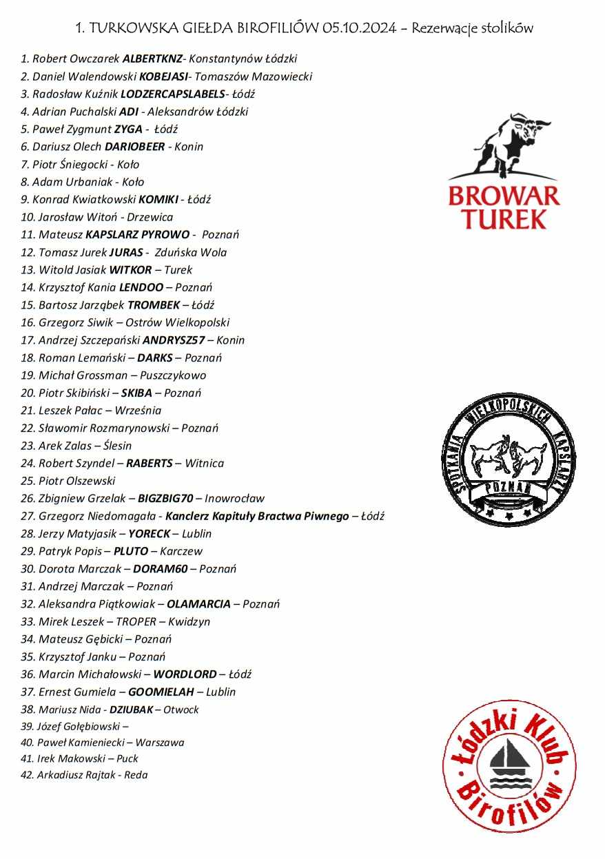 W imieniu Łódzkiego Klubu Birofilów i Wielkopolskiego Klubu Birofilów zapraszamy na Pierwszą Turkowską Giełdę Birofiliów w dniu 5.10.24 w godzinach 10.00-14.00 do Browaru Turek Al. NSZZ Solidarność 37. Wstęp i stoliki gratis. Więcej szczegółów wkrótce.