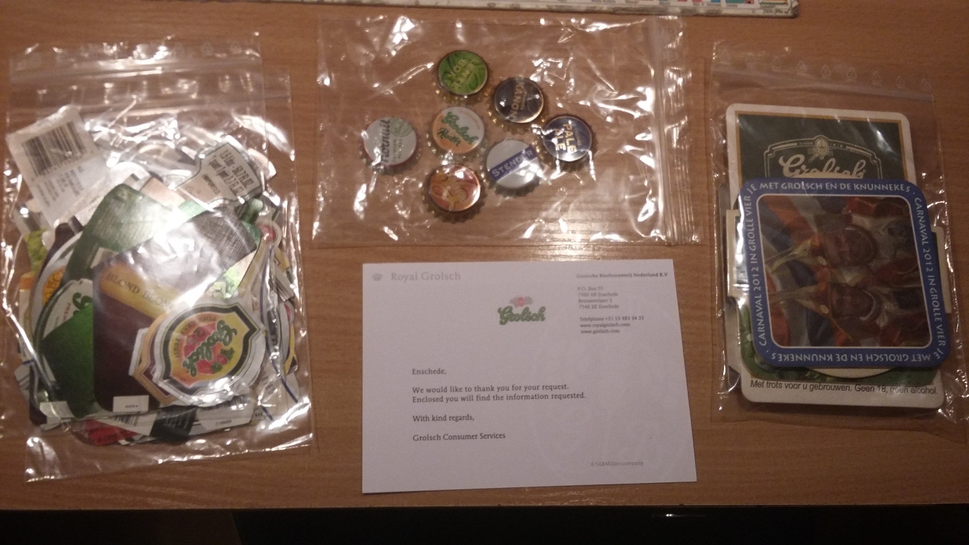Dostałem niedawno kapsle z Gościszewa po ponad roku od wysłania koperty ze znaczkiem. Pani asystentka bardzo przepraszała w załączonym liście, że tak długo nie odpisywali ale koperta gdzieś im zaginęła w biurze.