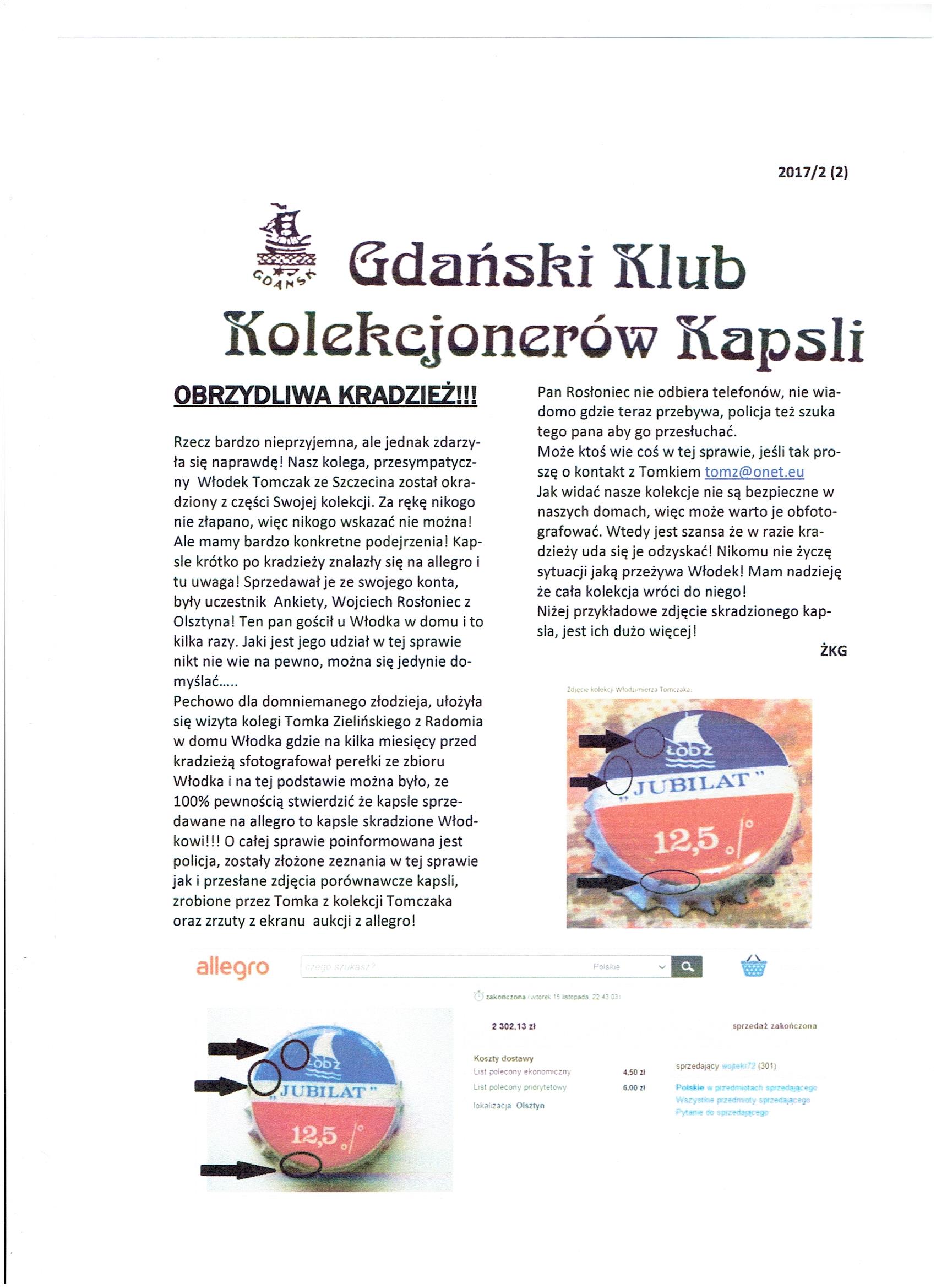 Zamieszczam tutaj cały materiał jaki przekazałem Policji (zeznawałem w tej sprawie jako świadek, ponieważ też wielokrotnie gościłem u Włodka i widziałem jego kolekcję).