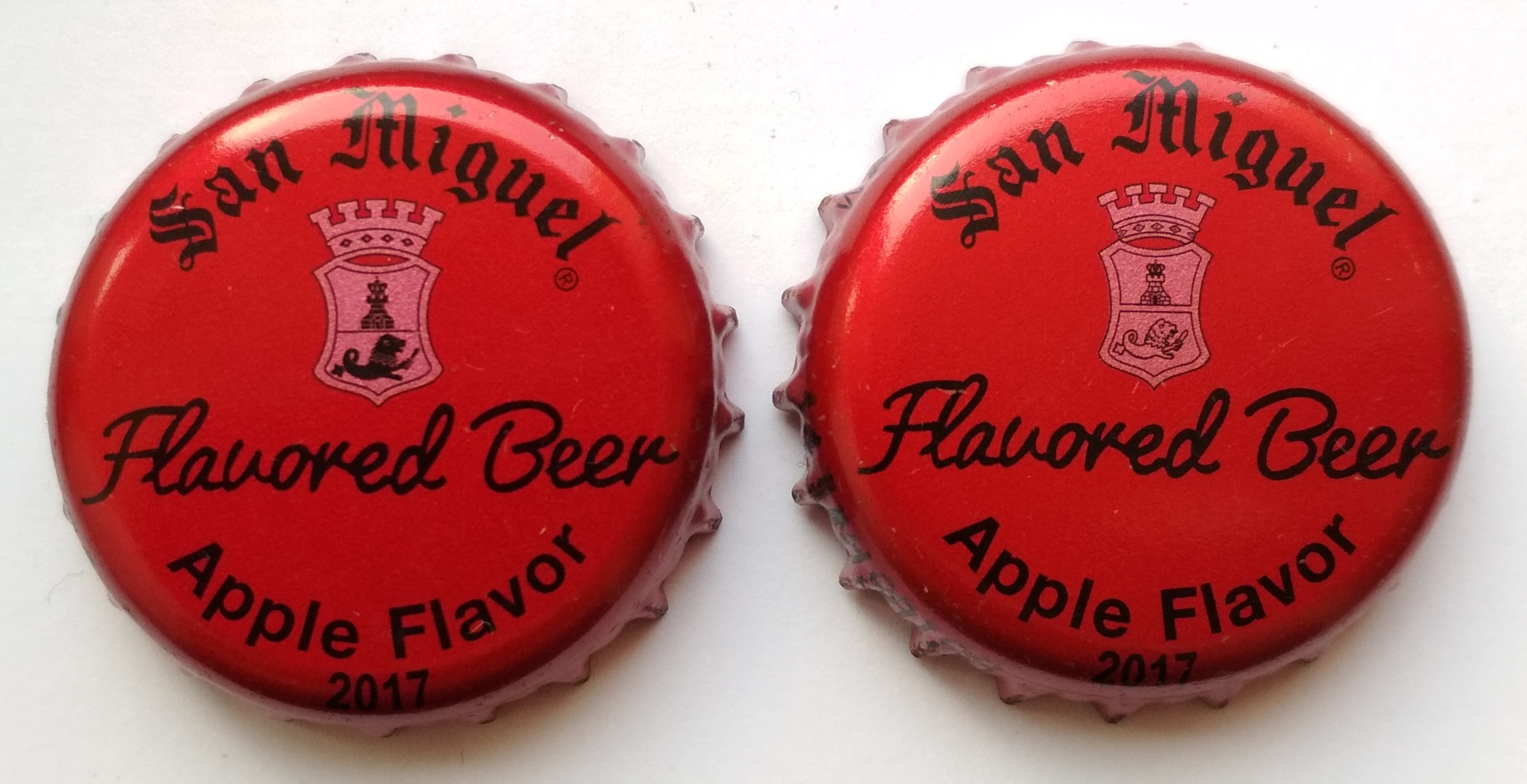 Dwa San Miguele Especial. Inaczej ułożone czerwone Linie pod okretem i nad napisem Especial