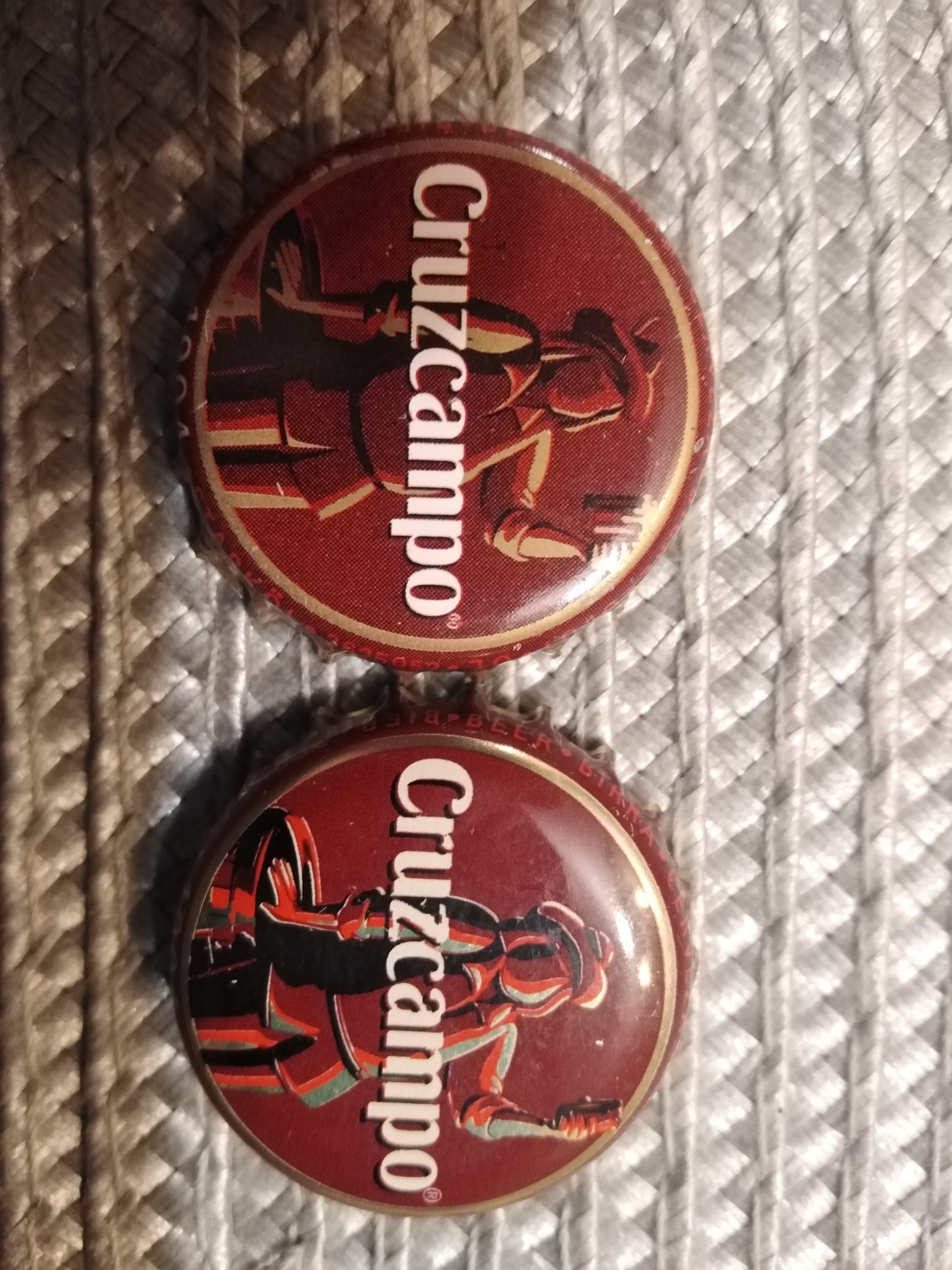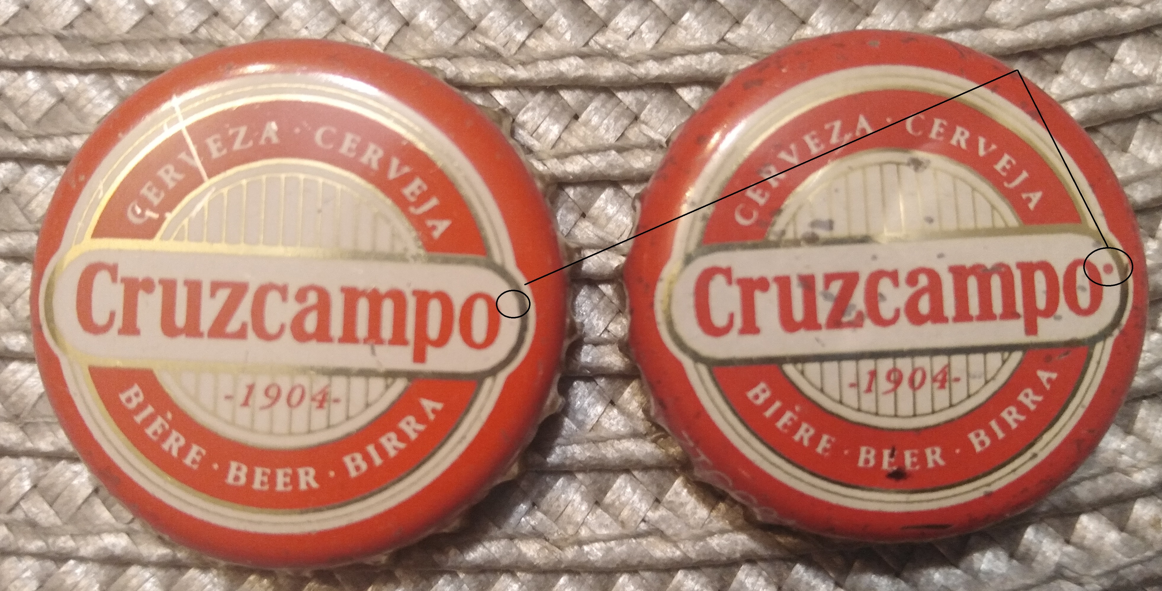 Na początek starszy wzór Cruzcampo i dość widoczna różnica z brakiem na jednym z kapsli znaku R