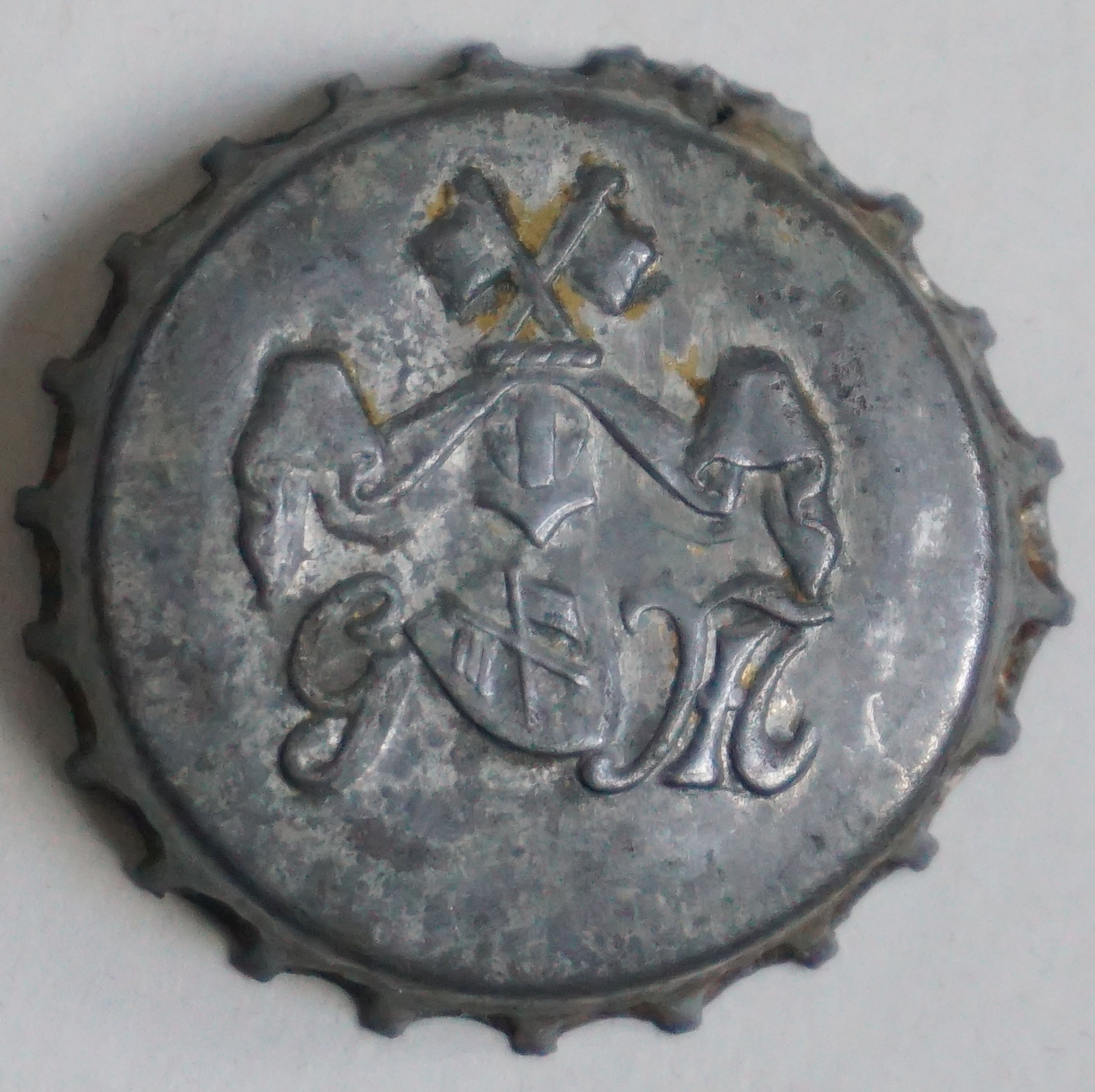 Oczywiście, nie lubię nie rozwikłanych zagadek i znalazłem metalową reklamę win Zaidlera z Wolsztyna, gdzie jest butelka z napisem rozpoczynający się taką samą literą.Na butelce jest napisane "Malutino", więc zakładam, że inicjały na kapslu to "G M". 🙂