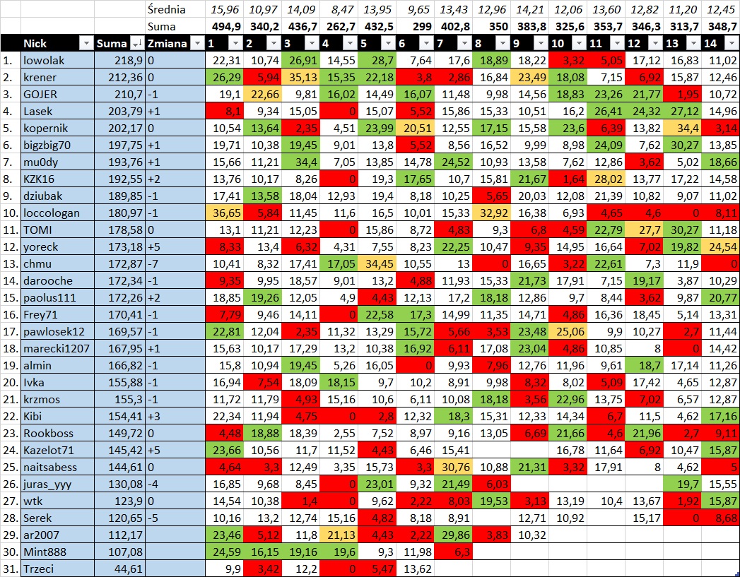 - bez większych zmian w czubie generalki, dalej na czele lowolak