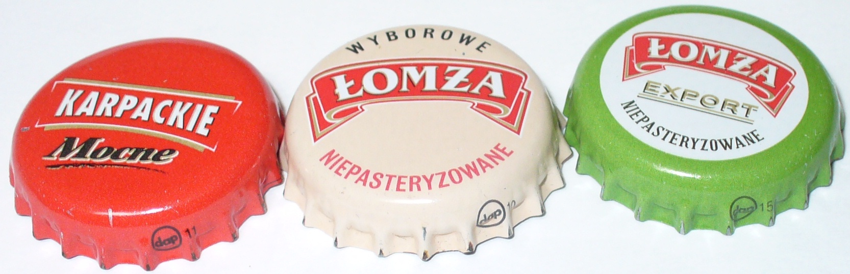 Drugie foto Przedstawia dodatkowo ŁOMŻĘ WYBOROWĄ NIEPASTERYZOWANĄ i EXPORT NIEPASTERYZOWANĄ obie z (dap) V, EXPORTOWA różni się od poprzednika kolorem zieleni ta z (dap) jest jaśniejsza.