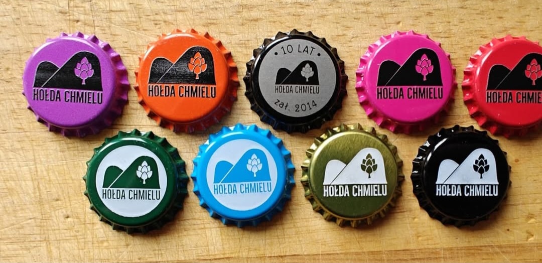 Nowe kapsle od Hołdy Chmielu w tym kapsel jubileuszowy, kolorowe z czarnym nadrukiem wykonane technologią druku UV (lekko wypukły) -.ciekawy efekt