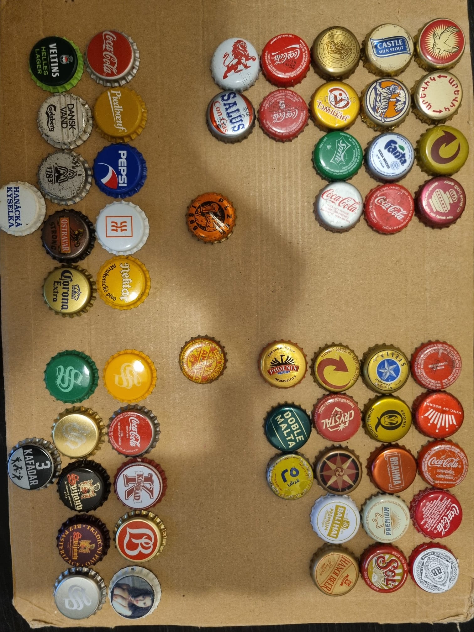 Mamy też zdjęcia tzw. egzotyki. I tu jest kompletny misz-masz. Dominikana, Australia, trochę fajnej Afryki. A z drugiej strony Corony, Tsingtao, Changi, szrotowe USA typu Bud czy Flying Dog. Tego nie weźmie nikt, nawet ludzie którzy korzystają z paczki z celu odświeżenia swoich dubli. Nie wiem jak obecnie wygląda Europa, mogę się domyślać, ale gdy paczka byłą u mnie to był to przede wszystkim belgijsko-niemiecki dżemik doprawiony Czechami. I ponownie, spora część kapsli była już przyssana na stałe do tych tacek. Te kapsle bardzo rzadko znajduję zainteresowanie, a jak ktoś się już na nie skusi, to podmienia je na równie nieatrakcyjne wzory.