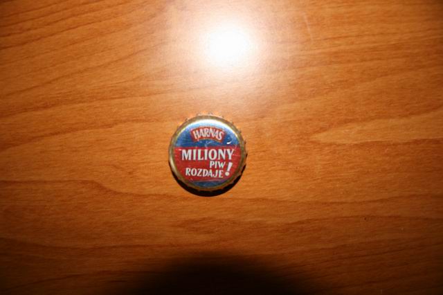 Czcionka jak z wzoru Brzesko 130 i 131 ale napis brzmi: "Harnaś Miliony Piw Rozdaje"